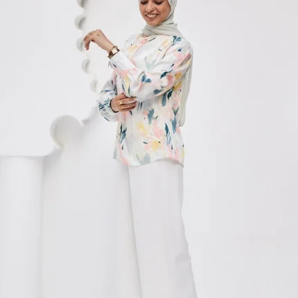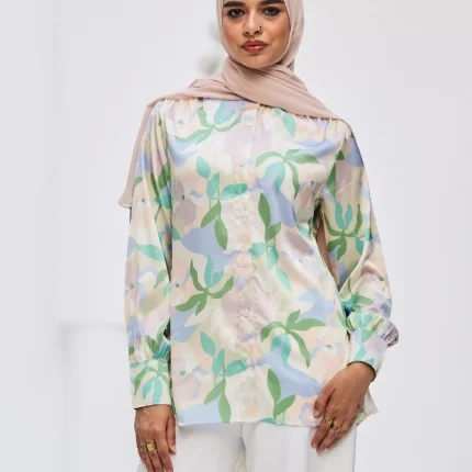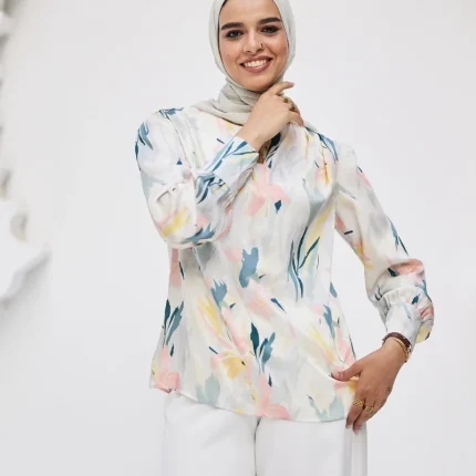بلوزة جلاكسي بودي روز بأزرار وأكمام منفوخة