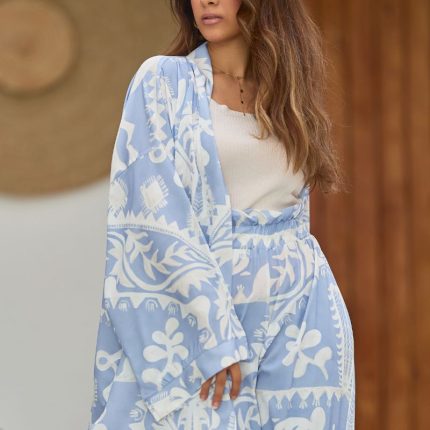 سوت كيمونو مطبوعة مينت ريما – قطعتين