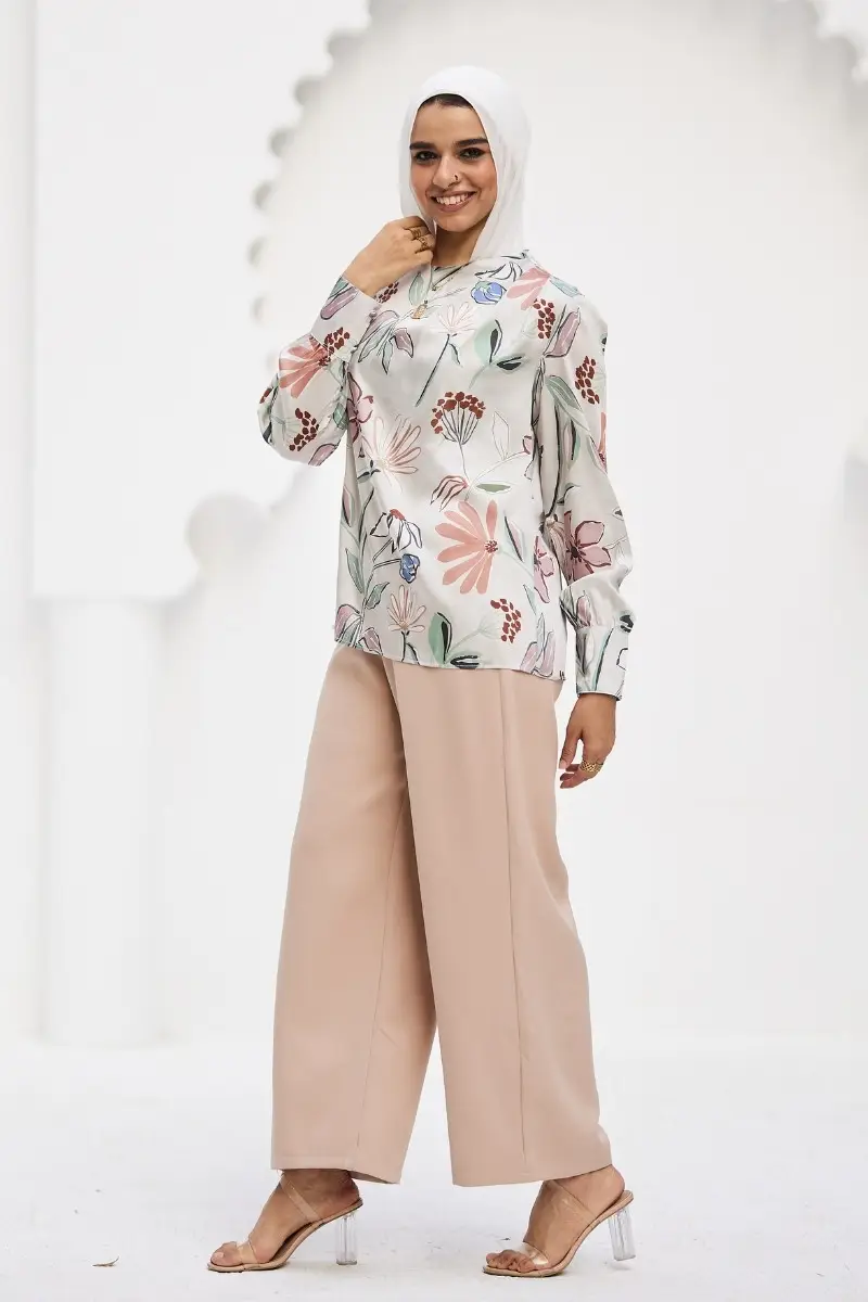 الرئيسية قمصان و بلوزات بلوزة ستان منقوشة