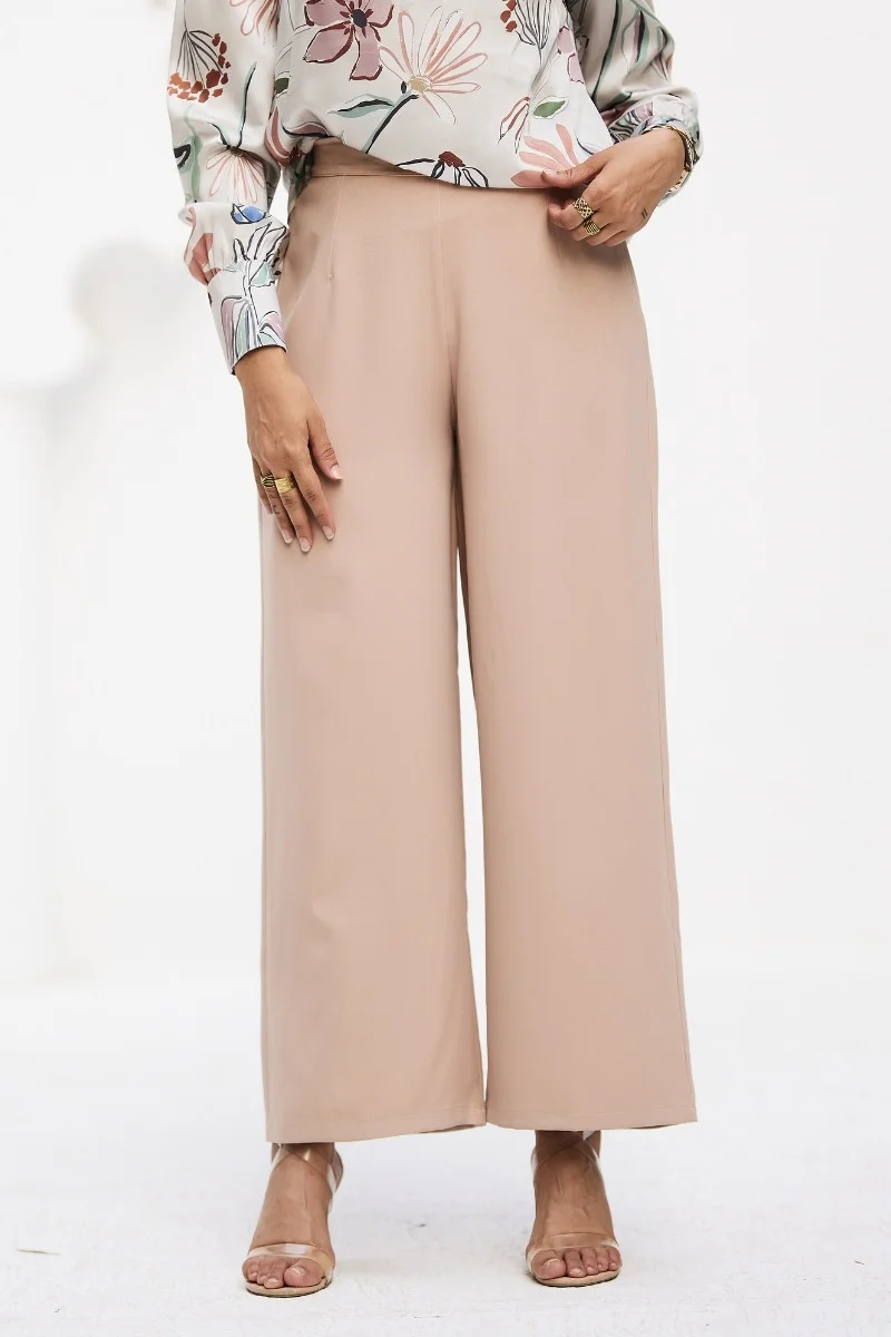 High-waist wide-leg trousers with double elasticated waistband is our signature best seller , contrast fabric.